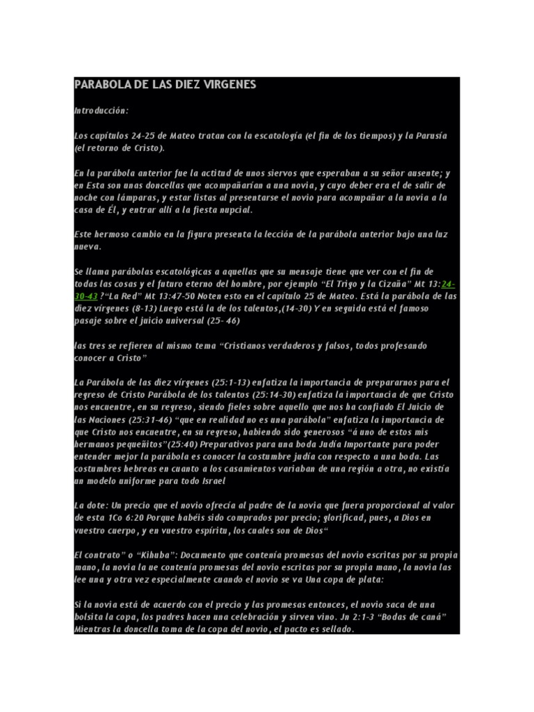 Parabola De Las Diez Virgenes Introduccion Pdf Descargar Libre